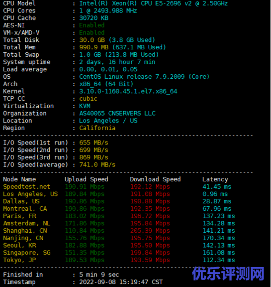 下面我为大家测试一款我们公司的入门版机型《29元/月》美国4837洛杉矶1核1G