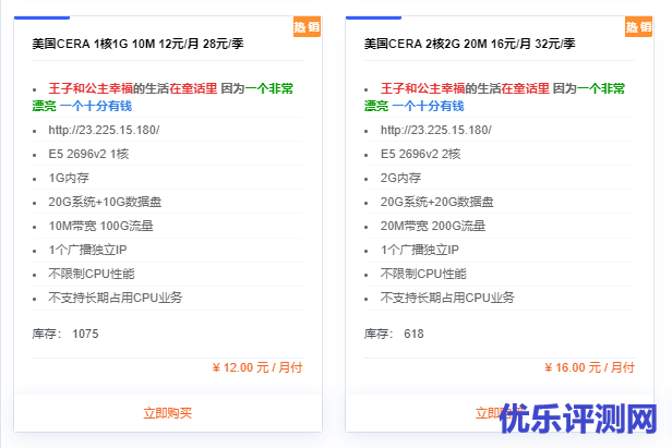 | 美国CERA | 1核 | 1G | 10M | 12元/月28元/季 | 采购地址 |
