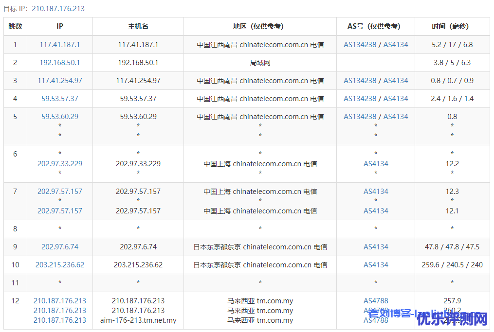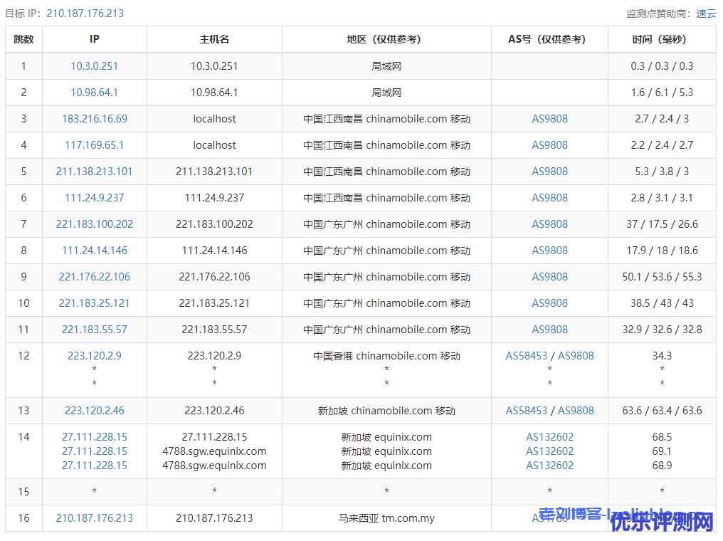 ReCloud马来西亚VPS路由去程跟踪测试