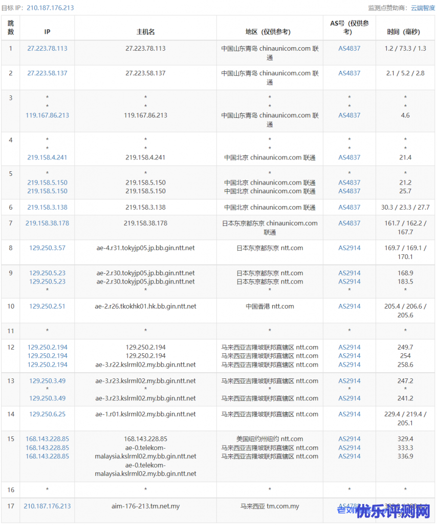 ReCloud马来西亚VPS路由回程跟踪测试