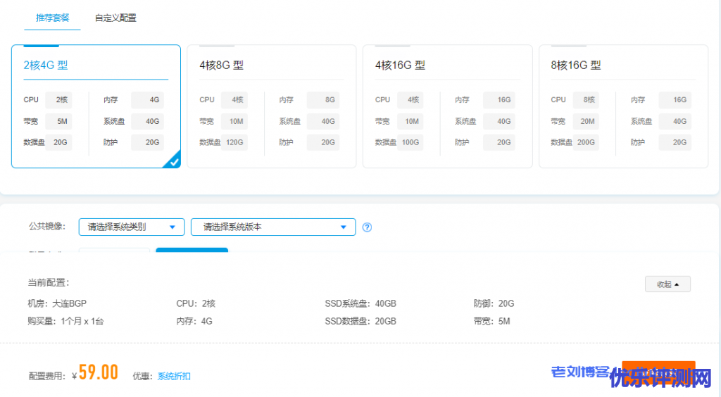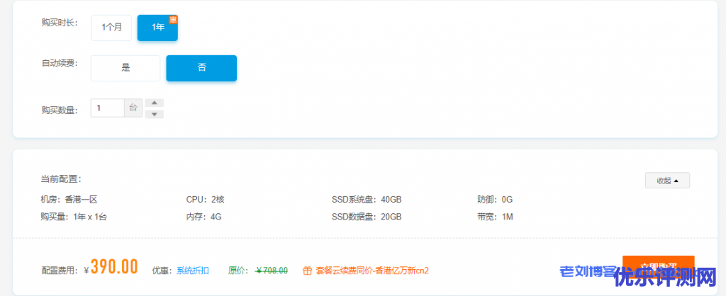 | CPU | 内存 | 硬盘 | 带宽 | 数据盘 | 防御 | 价格 | 购买 |