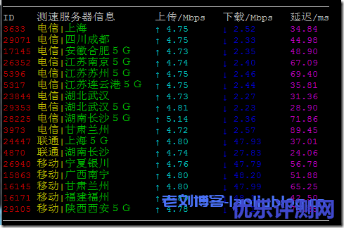 商家带宽均与套餐一致,基本上可以跑满峰值。