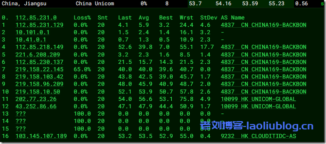 回程路由直接在VPS主机中运行一键包,同样是电信CN2,移动联通直连的情况。