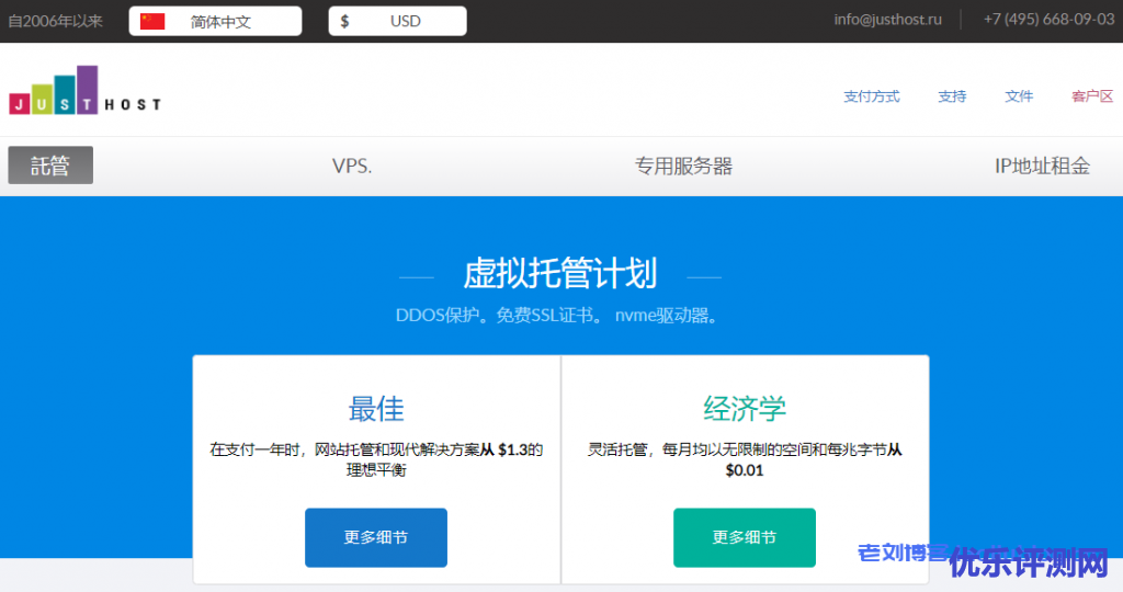 JustHost俄罗斯便宜VPS