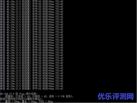 可以看到我本地Ping的平均延迟在89ms左右,对于一般的新加坡VPS来说我本地的平均延迟一般都在150~180ms左右,这样可以延迟可以说是相当给力。而且因为我是在内陆地区测试,如果你是东南沿海地区,那么这个延迟还会低很多的。并且可以看到网络稳定性也是相当给力的,没有丢包的情况。