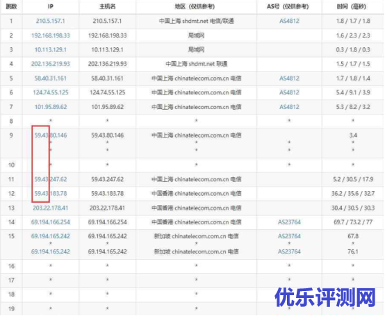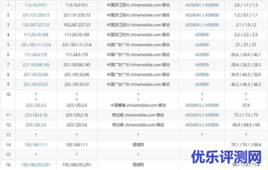 移动网络同样是通过香港节点后直连新加坡机房的。