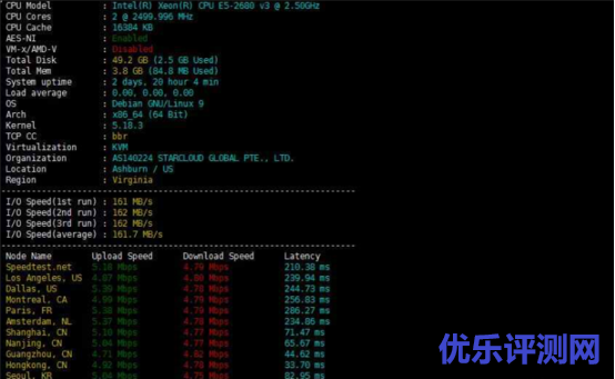 接下来我们再看看这款新加坡VPS的服务器性能和上下载速度怎么样,如下所示: