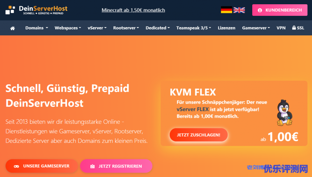 DeinServerHost是德国本土主机商,2013年成立,主要提供德国虚拟主机、VPS、独立服务器等。其德国KVM VPS宿主机采用Intel Xeon/AMD Epyc CPU,KVM虚拟化架构,无限流量,赠送免费备份,1G共享带宽,1IPv4+3IPv6(可选)双栈,可选额外1T或2T存储,可选DDOS防御。