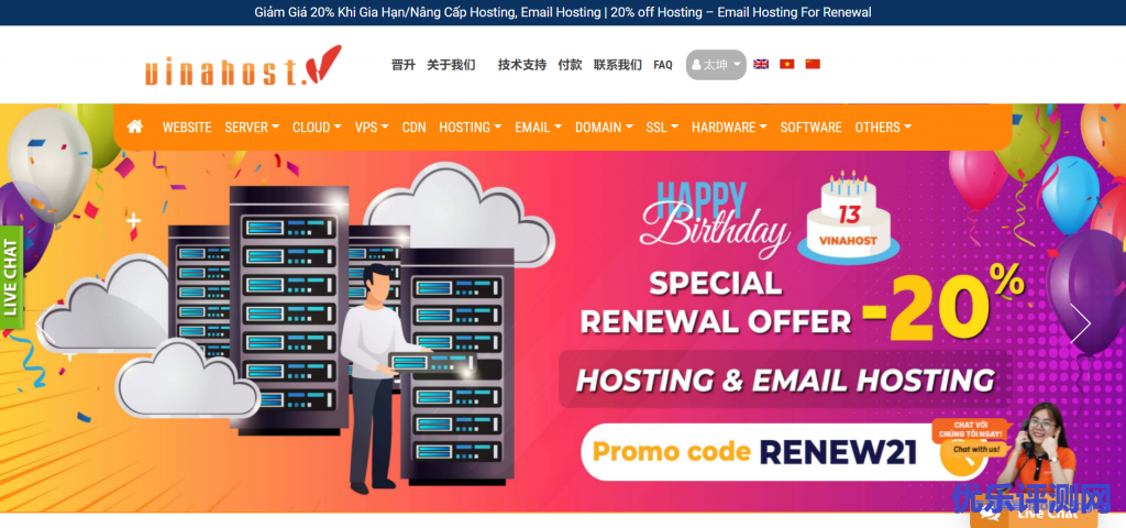 vinahost官网:https://secure.vinahost.vn/ac,有中文版本,可在右上角选择,点击国旗图标即可。
