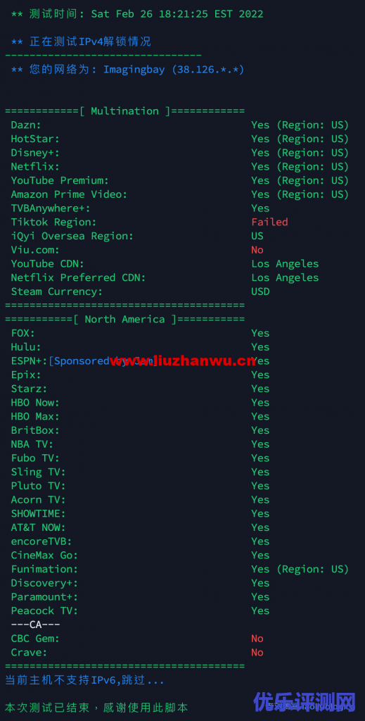 半月湾HMBCloud美国联通AS9929线路VPS流媒体解锁测试: