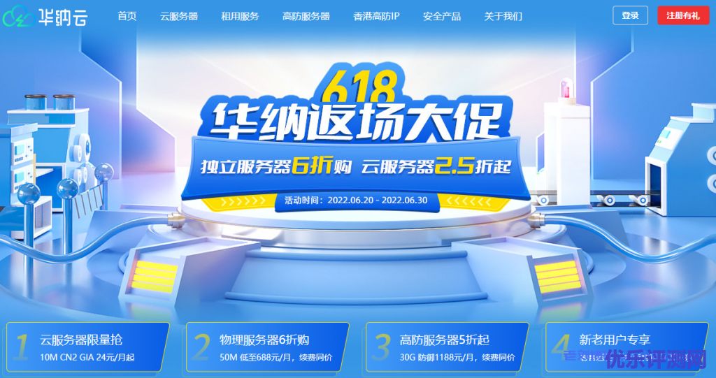 6月20日到6月30日,华纳云开展618返场大促活动:云服务器限量抢10M CN2 GIA 24元/月起,物理服务器6折购50M低至688元/月,续费同价;高防服务器5折起,30G防御1188元/月,续费同价;新老用户专享-老客返佣10%/新客送4120+券。