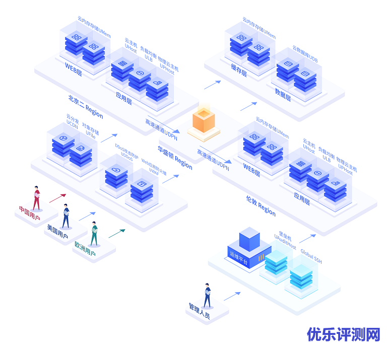 网络质量:UCloud遍布全球的数据中心通过专线连接,能极大的减少跨国网络带来的网络延时和不稳定性。