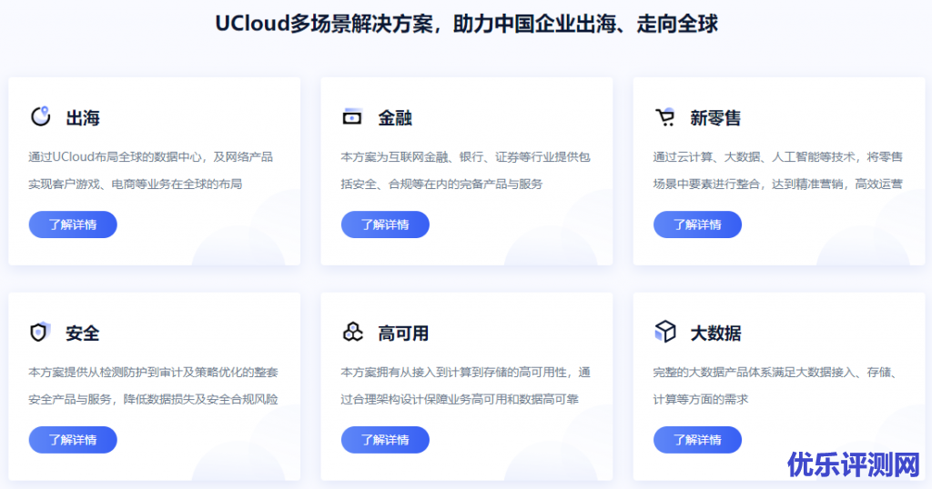 同时,为了更好地服务中国出海企业及当地企业,提供快捷、高效、稳定的云服务,UCloud已经在印尼、越南、印度、新加坡、尼日利亚、英国和巴西七个新兴市场,以及俄罗斯、美国洛杉矶、华盛顿、德国法兰克福、泰国曼谷、韩国首尔、日本东京、迪拜、香港、台湾等多个海外区域部署了本地机房,提供高质量的网络传输能力以及海外专线、安全高防等核心海外产品。 每个海外数据中心的详细信息可参见附录。截至目前,UCloud已经在全球20+个地域拥有了33个可用区,在出海云服务商中处于领先地位。随着中国企业的触角伸向全世界,UCloud作为底层的云计算服务提供商,将不遗余力地继续为中国出海企业保驾护航。(来源UCloud)