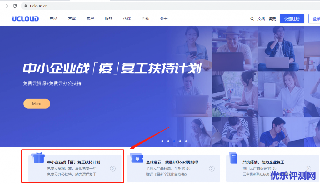 1,访问UCloud官网>>,找到以下内容点击进入