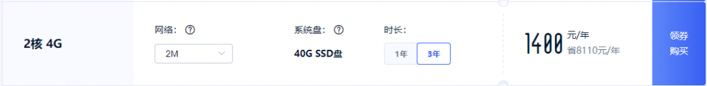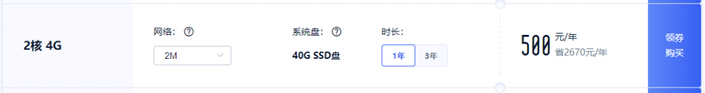 配置—2核4G云服务器2M带宽40G系统盘;