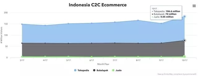 随着电商市场的不断发展,各电商平台之间的竞争也日趋激烈。两大电商平台 Lazada、Tokopedia 流量不相上下。而从 2017 年开始,原本专注于核心 C2C 业务的 Tokopedia 也开始逐渐发展 B2C 业务,对 Lazada 造成了一定威胁。