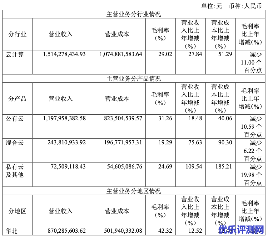 近年来,传统行业和政企客户等产业互联网的上云需求越来越强烈,为云计算市场带来巨大的增量空间,而这部分增量需求在发展初期更倾向于混合云的模式。UCloud优刻得财报显示,主营业务中,公有云业务收入比去年同期增长1.87亿元,占主营业务收入的比重从 2018 年度的 85.36%下降至 2019 年的 79.11%;而私有云及混合云收入快速增长,较 2018 年同期收入分别增长109.54%、75.63%。UCloud优刻得在保持原来公有云客户良好合作关系的同时,积极开拓政企和传统企业客户,大力推进混合云和私有云产品体系建设,产品及服务组合愈加多元化。