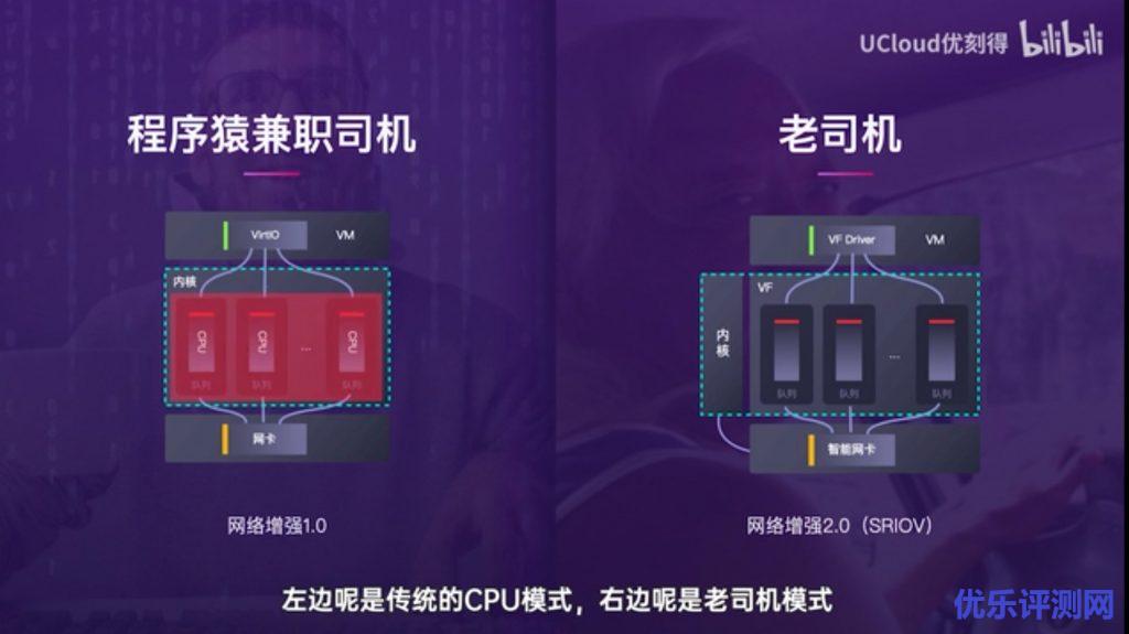 先看用户网公路,即用户与主机之间相互通信的网络,UCloud自研了网络增强2.0技术,使得快杰云主机的网络最高性能达到了1000万PPS,是上一代云主机的10倍!这是如何做到的呢?