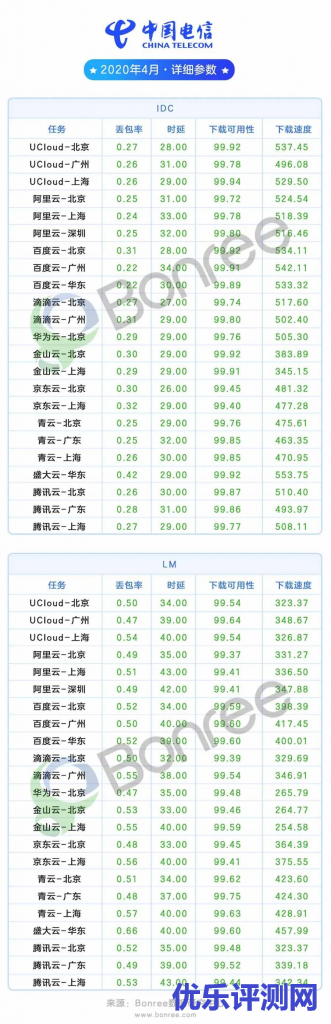 此榜主要反应在中国电信运营商覆盖下,各云平台在网络稳定和传输质量上的表现。