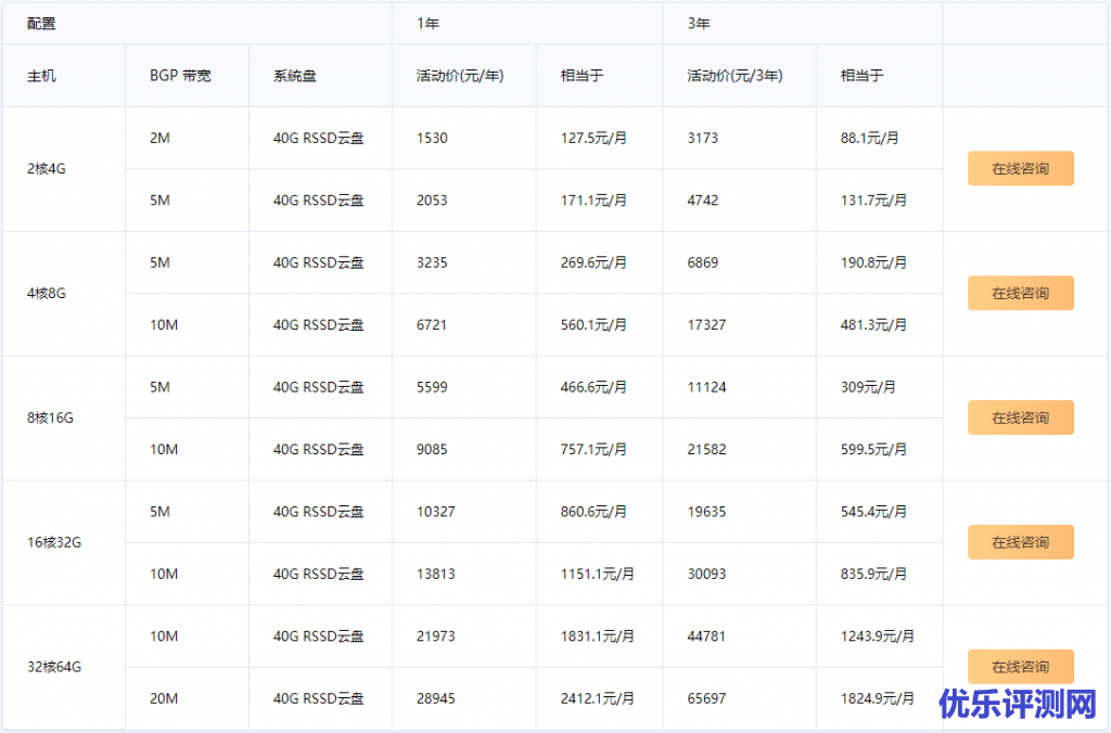 2核4G快杰云主机,BGP带宽5M,系统盘40G RSSD云盘,数据盘100G RSSD云盘,1年468元(约39.0元/月),3年1398元(约38.8元/月);