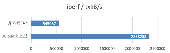 测试结果可见,UCloud快杰云主机的网络吞吐能力大约是腾讯SA2型的4.3倍。