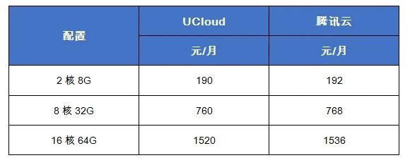 如此图所述,UCloud快杰云主机的月单价看似均高于腾讯云。但通过UCloud控制台上直接查看三个配置的价格,却会发现事实不是如此。