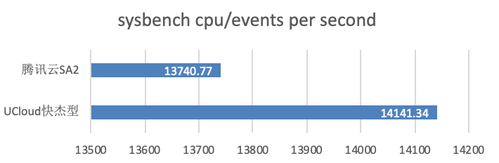 测试结论可见,相较腾讯云SA2机型,UCloud快杰云主机领先3%。