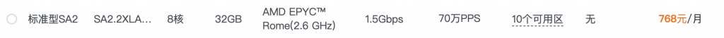 而腾讯云SA2机型的价格则和控制台展示一致: