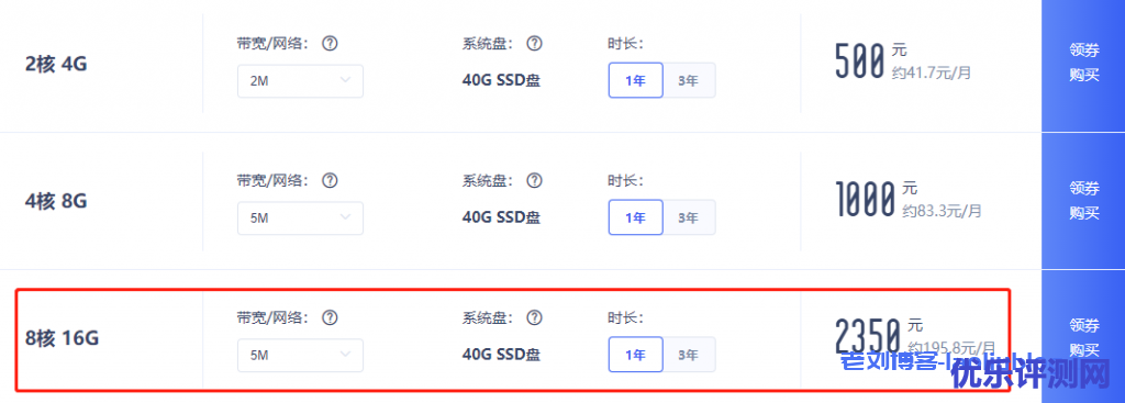 (老刘博客特别推荐!!!)机房:香港免备案 8核16G BGP带宽5M 系统盘40G SSD云盘 时长1年2350元( 约195.8元/月 )/时长3年6950元( 193.1元/月 );