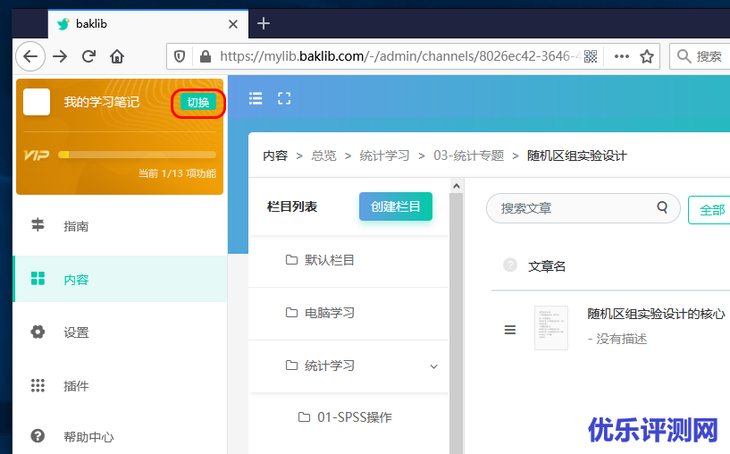 下图界面左上方的切换按钮可以切换到不同的笔记本(站点)