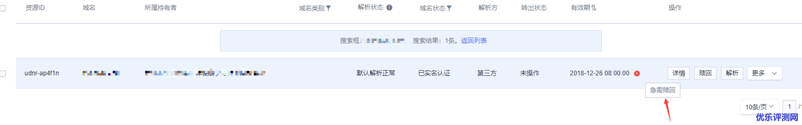 • 赎回期域名解析暂停。一旦操作赎回,赎回成功后将即时恢复DNS。