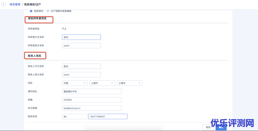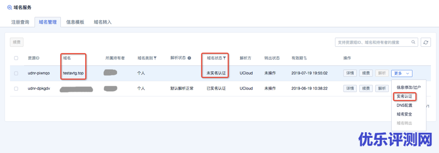 老刘博客这里以UCloud优刻得云平台域名产品为例介绍其域名信息模板管理,域名信息修改/过户与域名实名认证操作流程,希望给朋友们一定帮助,更顺利地操作域名注册使用过程。