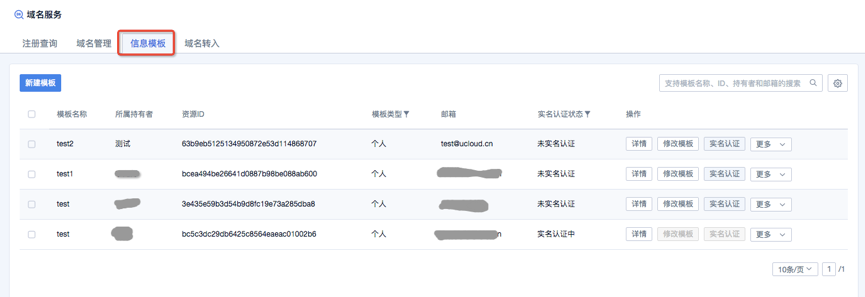 合理的使用信息模板管理,可以使得域名实名认证、过户等操作事半功倍。