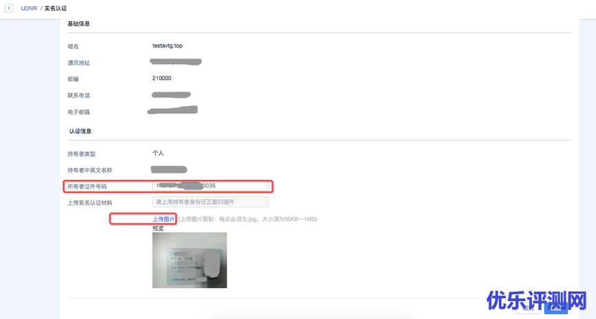 •域名持有者:与身份证上的姓名保持一致。所有者证件号码:与身份证号码保持一致。