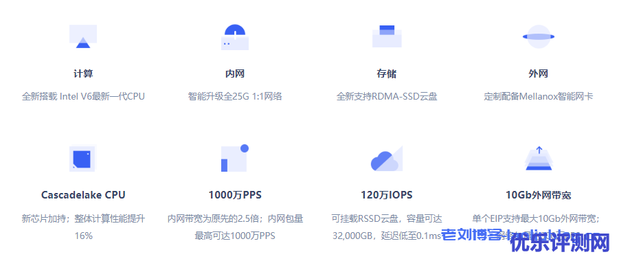 快杰云主机,性能、存储、网络,唯快不破顶配旗舰,一流硬件,怪兽性能。老刘这里贴张图来展示下UCloud的这款高性能云服务器快杰云主机的性能特点。