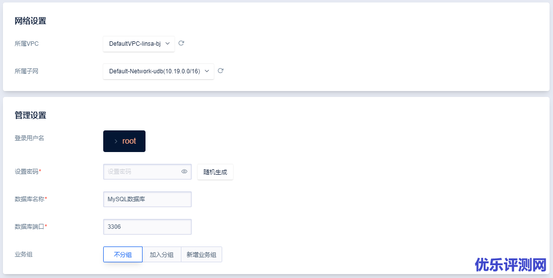 3.2)按需设置网络、实例名称、端口号,管理员用户名和管理员密码。MySQL默认端口号为3306,管理员用户名默认为root。为了数据安全,管理员密码需要一定的复杂度。