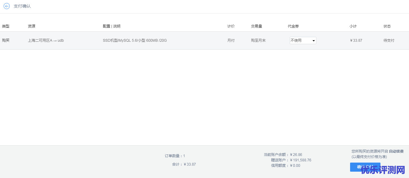 3.3)数据库计费,在右侧面板选择计费方式与计费周期,并点击“立即购买”。