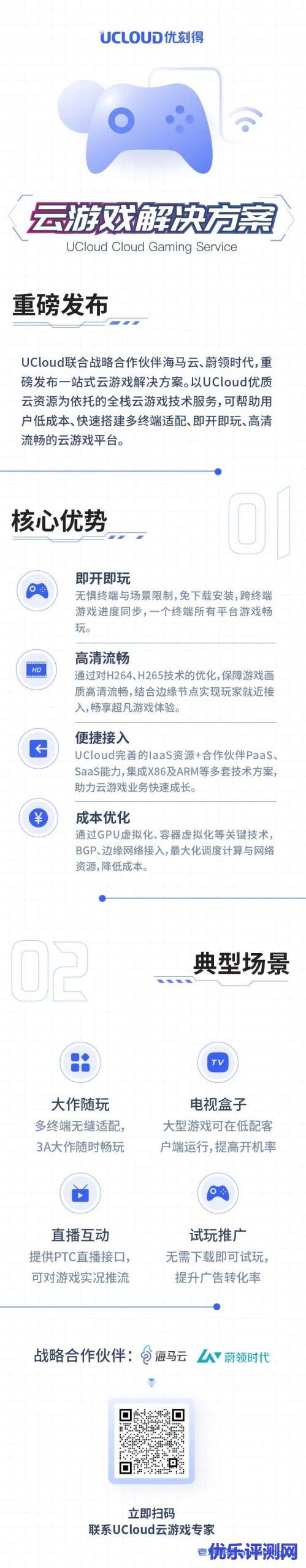 7月30日,UCloud与业界领先的云游戏技术服务商海马云和蔚领时代达成战略合作,重磅发布一站式云游戏解决方案。基于UCloud优质云资源为依托的全栈云游戏服务,可帮助用户低成本、快速搭建多终端适配、即开即玩、高清流畅的云游戏平台。这意味着UCloud正式布局“云游戏”产业!