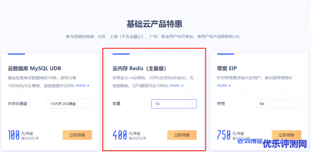 UCloud云内存Redis促销:云内存 Redis(主备版)——采用主从+vip架构、100%支持Redis协议;无性能限制、QPS最高可达10W/s。1G容量400元/年,2G容量1100元/年,4G容量2200元/年,8G容量4400元/年,活动持续到2020年12月31日,Redis促销传送门>>