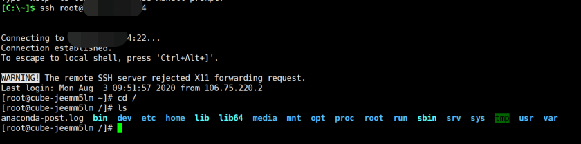 接下来用我们使用我们创建时的EIP尝试ssh登录操作,如下图。