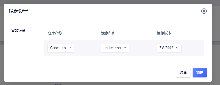 创建Cube时选择容器镜像为Cube_Lab仓库下的centos-ssh镜像,版本目前支持7.8.2003。