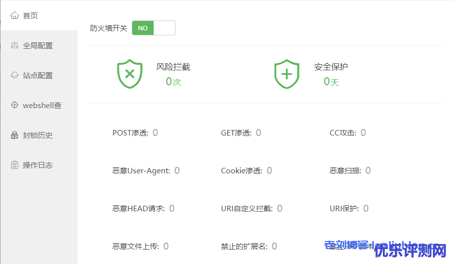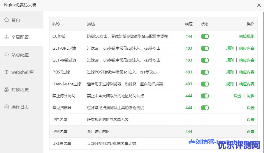 下图是nginx免费防火墙首页,默认开启状态,无需改动。