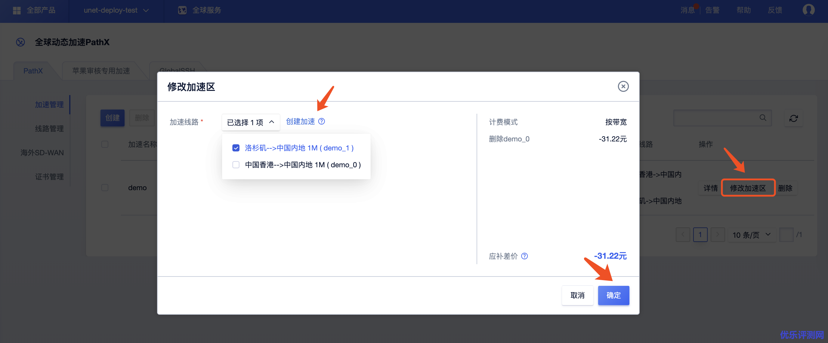 4)在线路管理列表,点击修改加速区按钮,弹出框内即可完成线路的替换。