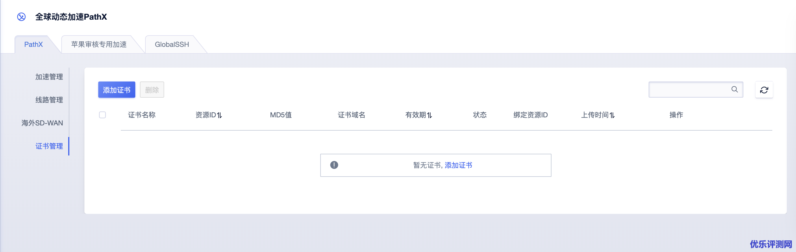 6)证书管理页面,可以查看证书的过期时间、证书域名、使用该证书的加速配置等关键信息,