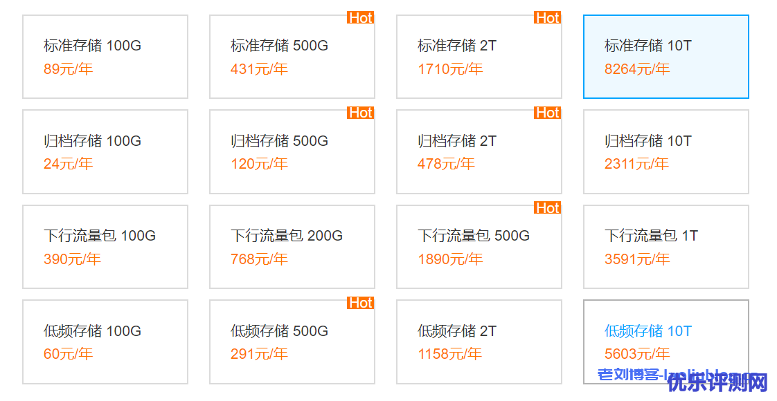归档存储—100GB,24元/年;500GB,120元/年;2TB,478元/年;10TB,2311元/年。