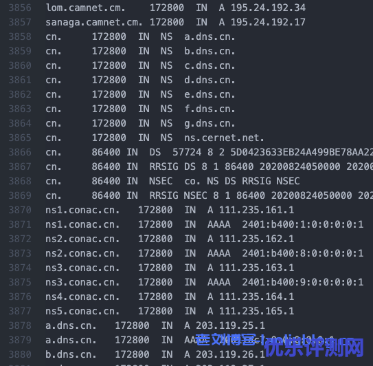 我们可以看到,和cn域名解析相关的记录也就那么几十行。