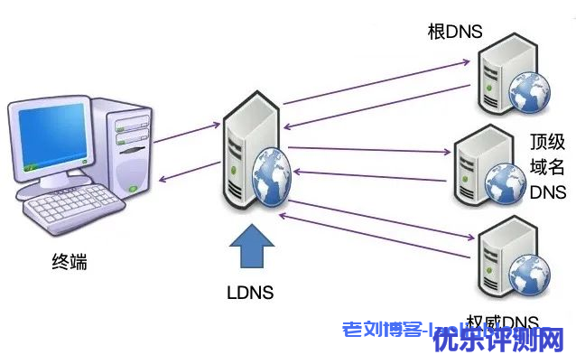 每个电脑里面都设置了本地DNS服务器(简称LDNS),需要的时候,就向LDNS发出请求,LDNS在网上问权威域名服务器(简称权威DNS),有时候问一家是不够的,要问一大圈下来,最后才能得到答案。