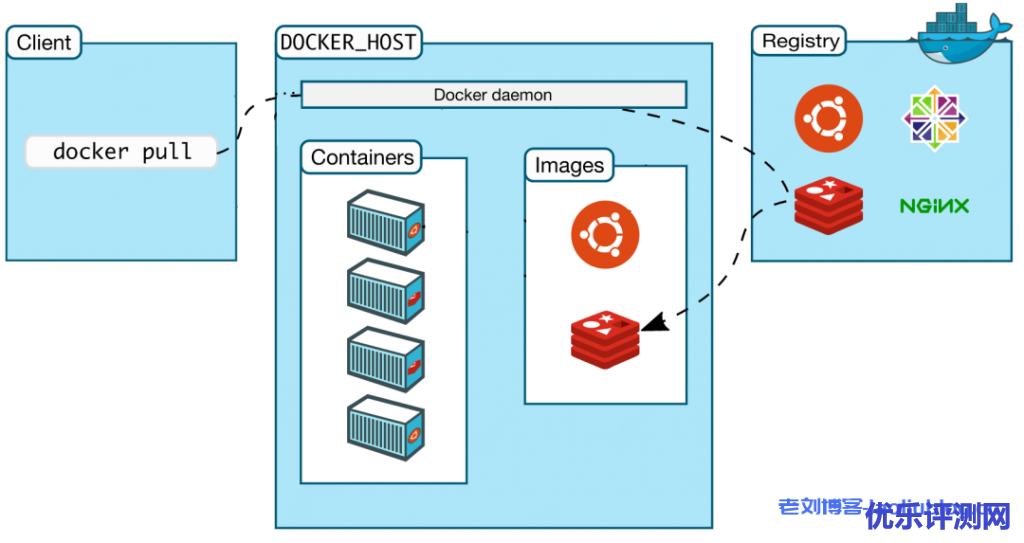因此,这个命令的实现也很简单,那就是用户通过docker client发送命令,docker daemon接收到命令后向docker registry发送image下载请求,下载后存放在本地,这样我们就可以使用image了。