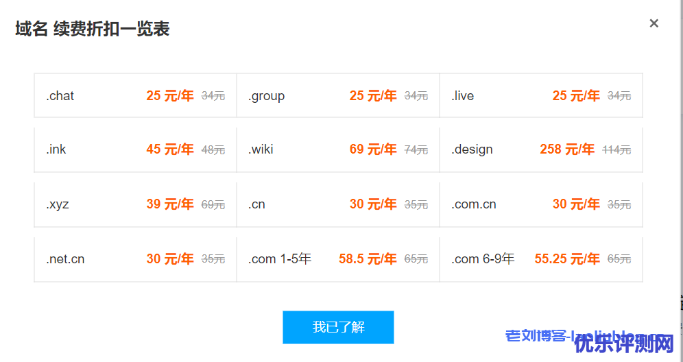 腾讯云域名续费价格如上图:.chat后缀域名续费25元/年,.group后缀域名续费25元/年,.live后缀域名续费25元/年,.ink后缀域名续费45元/年,.wiki后缀域名续费69元/年,.design后缀域名续费258元/年,.xyz后缀域名续费39元/年,.cn后缀域名续费30元/年,.com.cn后缀域名续费30元/年,.net.cn后缀域名续费30元/年,.com后缀域名续费58.5元/年(续费1-5年),.com后缀域名续费55.25元/年(续费6-9年)。