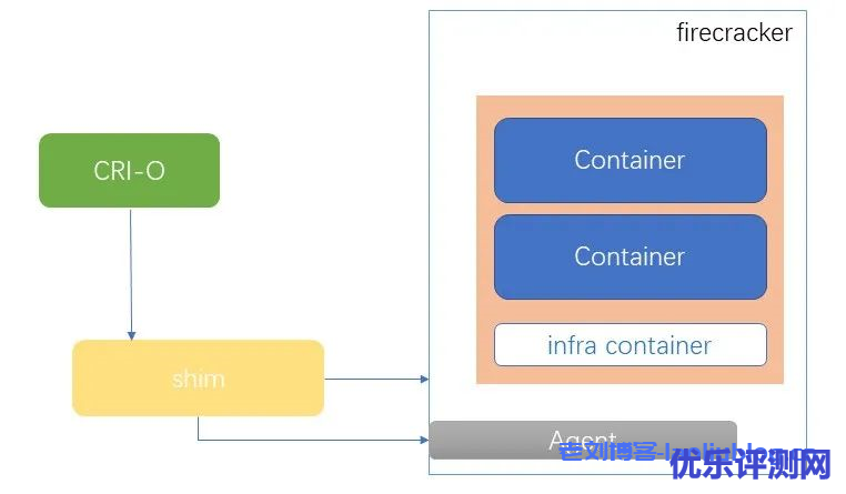 支持虚拟机容器运行时的容器管理服务也有多种开源方案,例如containerd/cri-o,kata-container和firecracker-containerd等。经过比较,容器团队选择了cri-o + firecracker-containerd的组合。这二者在功能上能够满足单机容器管理的需求,而且和其他选型相比,代码架构更加清晰,调用链路简单明了,便于后续根据产品需求定制和改造。